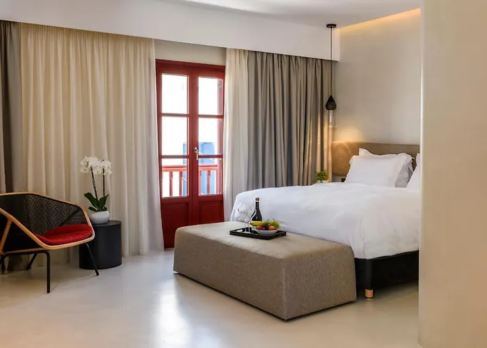 Located in the busy part of Mykonos Town, the delightful accommodation is located only 5 minutes' walk from Aegean Sea. The hotel offers proximity to such natural sights as the tranquil Ftelia Sandy Beach (4.5 km) and Agios Stefanos Sandy Beach (3.2 km).